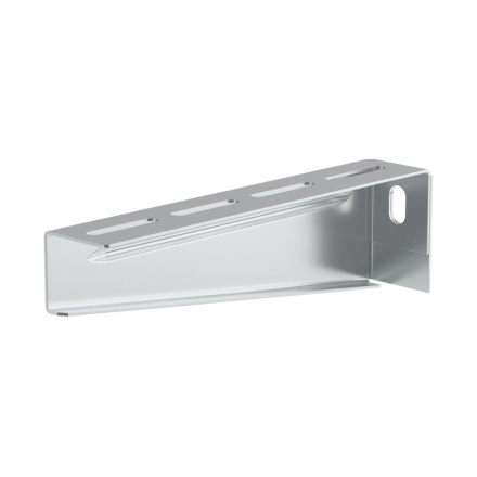 The bracket is used as an element to create a supporting structure for a cable tray. It is designated for installation on the wall or mounting profile. Attached to the wall using 2 pcs Ø 8 mm anchors. NIXSM 6X10 bolts are used to attach the cable tray to the bracket. To protect the cables, the bolt head is inside the cable tray.